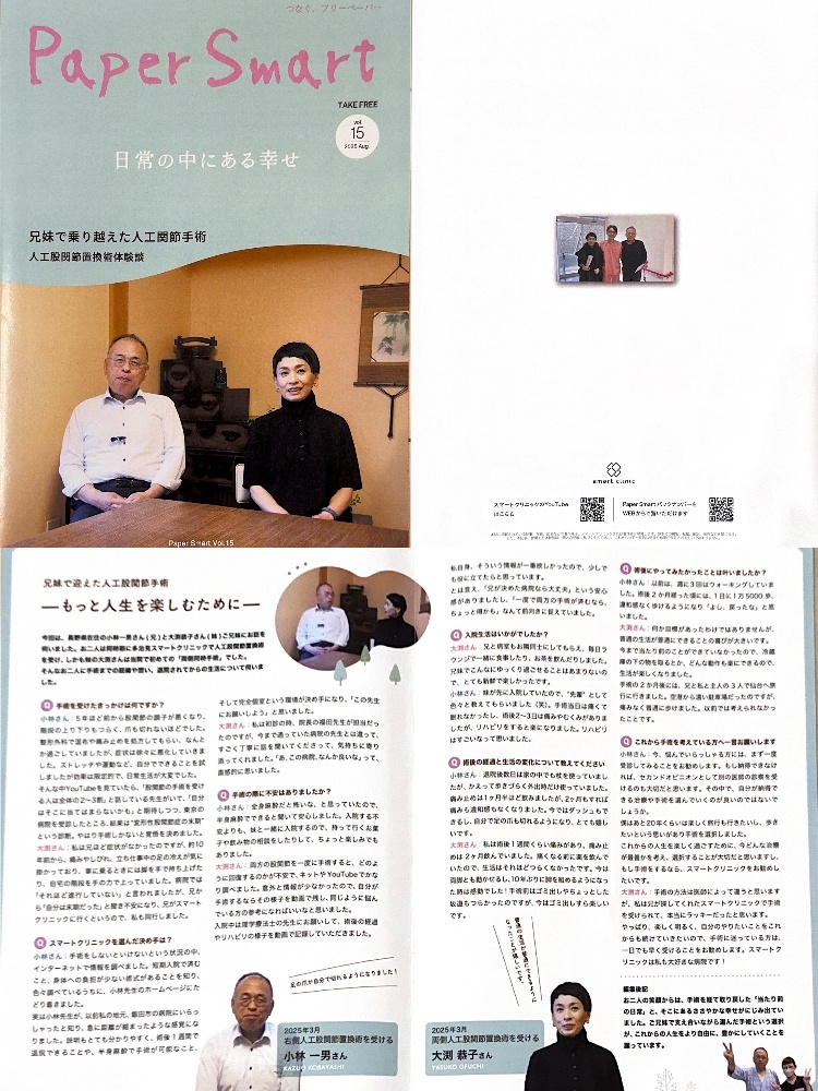股関節では3か月ほど経過すると「快適で手術したことを忘れて過ごしている」とおっしゃる方が多くいらっしゃいます。