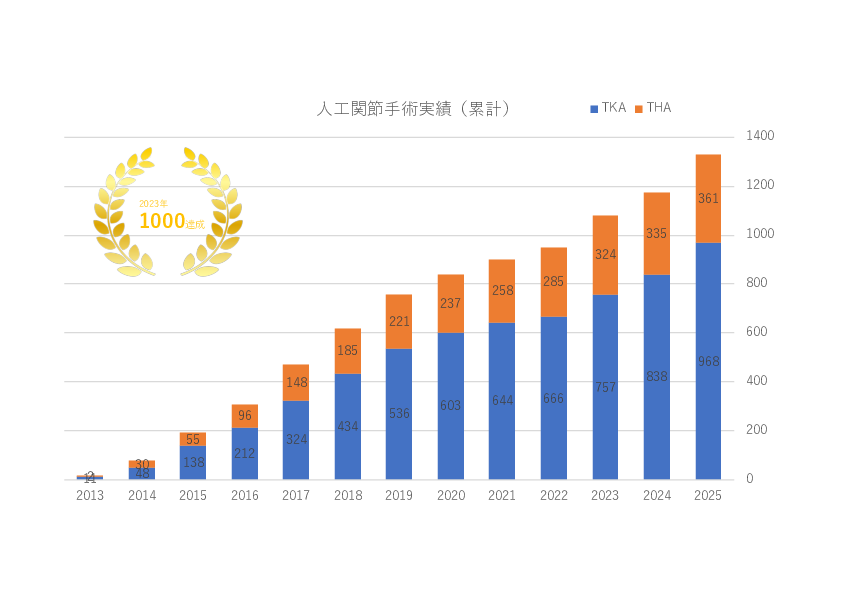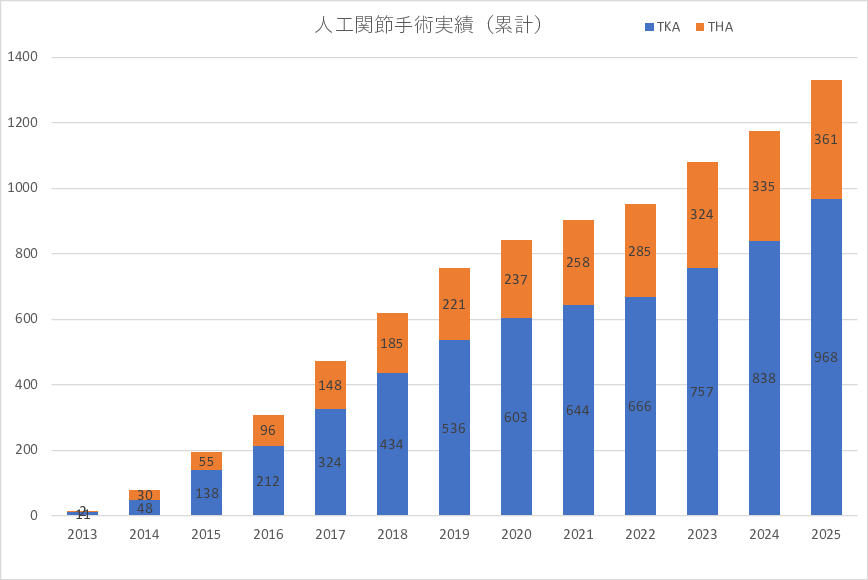 人工関節手術に携わり10年以上が経過し1000例を超える執刀経験を積みました。2025年まで累計1329